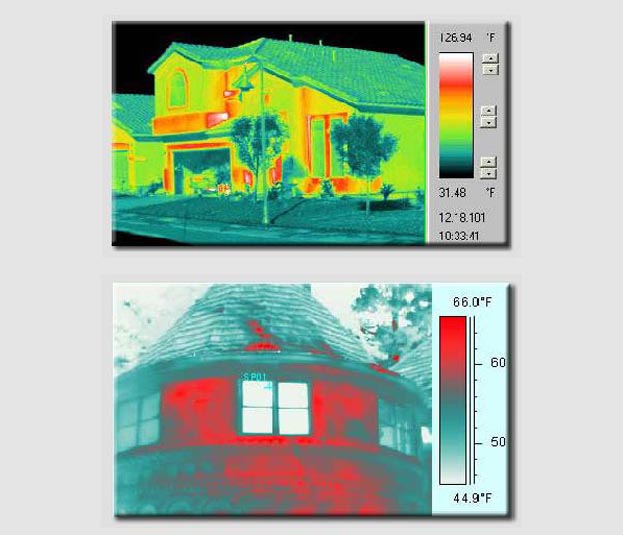 Thermography is the use of an Infrared imaging and measurement camera to "see" and "measure" thermal energy emitted from an object. It is not a moisture meter, and does not "see" moisture. The camera helps the inspector see temperature differences and abnormalities which can be caused by moisture. When two areas composed of the same or similar materials experience changing ambient temperatures, the area with the higher thermal mass (usually moisture) will change temperature more slowly. We let water run through the drains of the toilets, sinks, showers, and dishwasher. Depending on the ambient conditions at the house at the time of inspection, we may run hot or cold water. If the house is cold, hot water will show up better than cold water. We may use heating or A/C system to help change the temperatures in the house. The dry areas with less thermal mass will change temperature quickly. Areas with a higher thermal mass, which may include damp areas, will change temperature slower. These differences will be obvious when viewed through the Infrared camera.